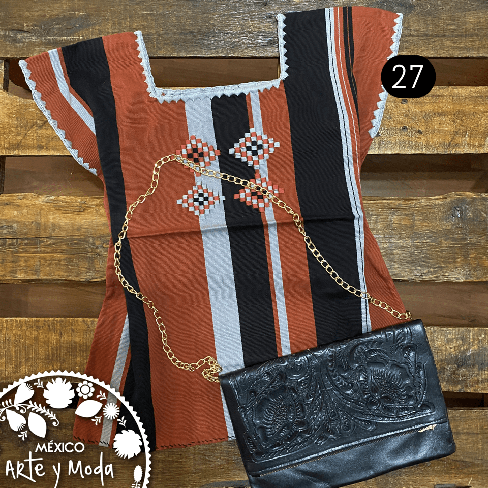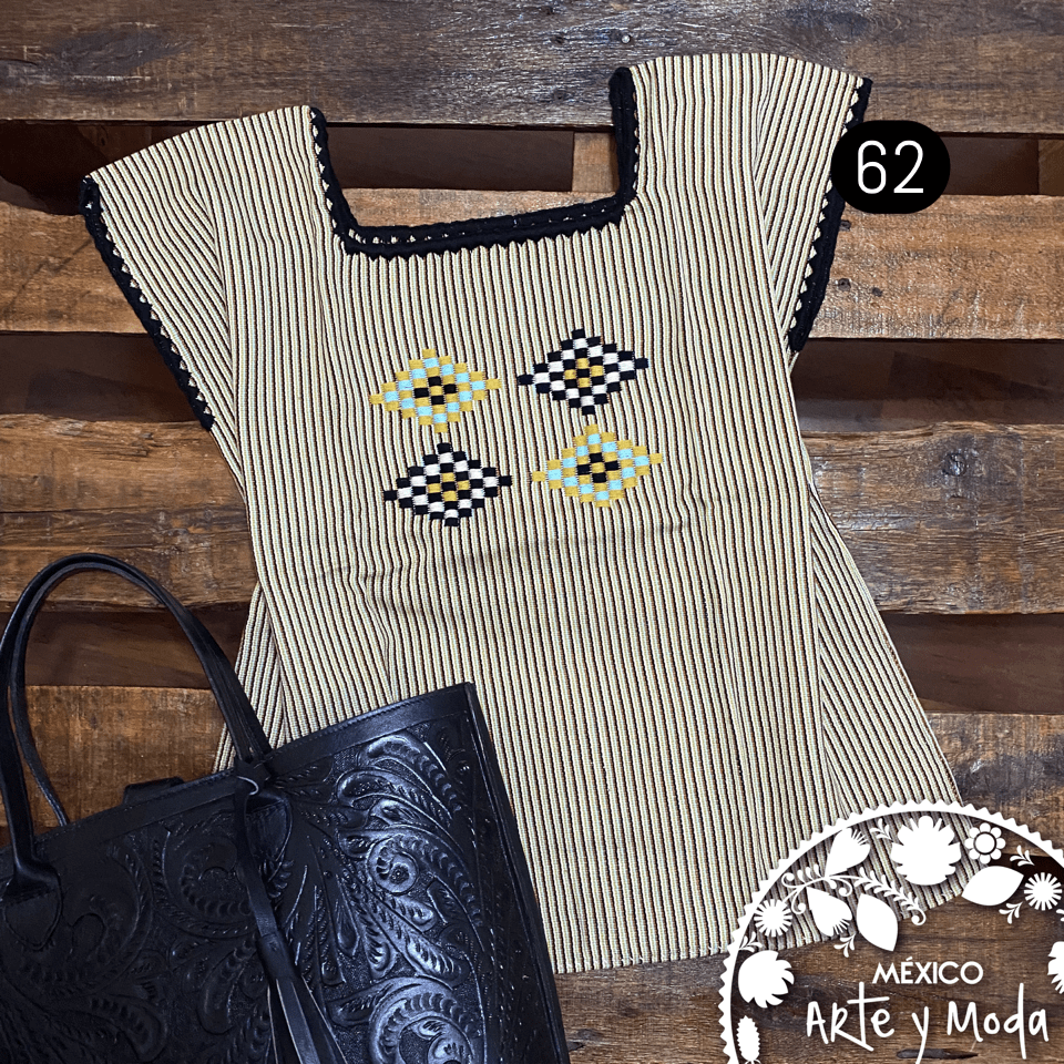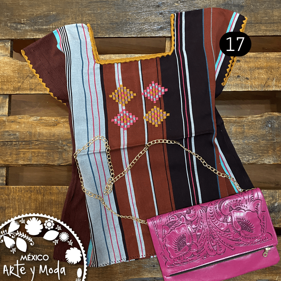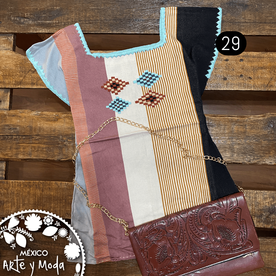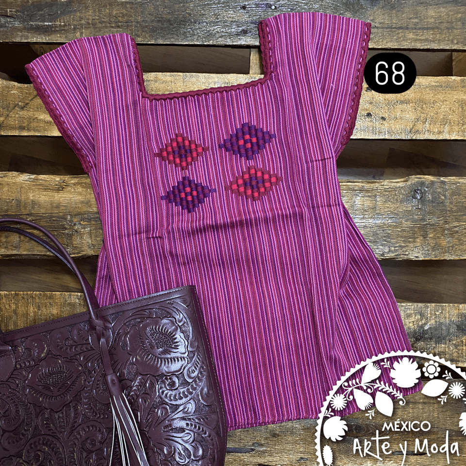 - Soft fine fabric on a multicolor backstrap loom, with hand-embossed brocades, 100% cotton, straight Huipil type cut