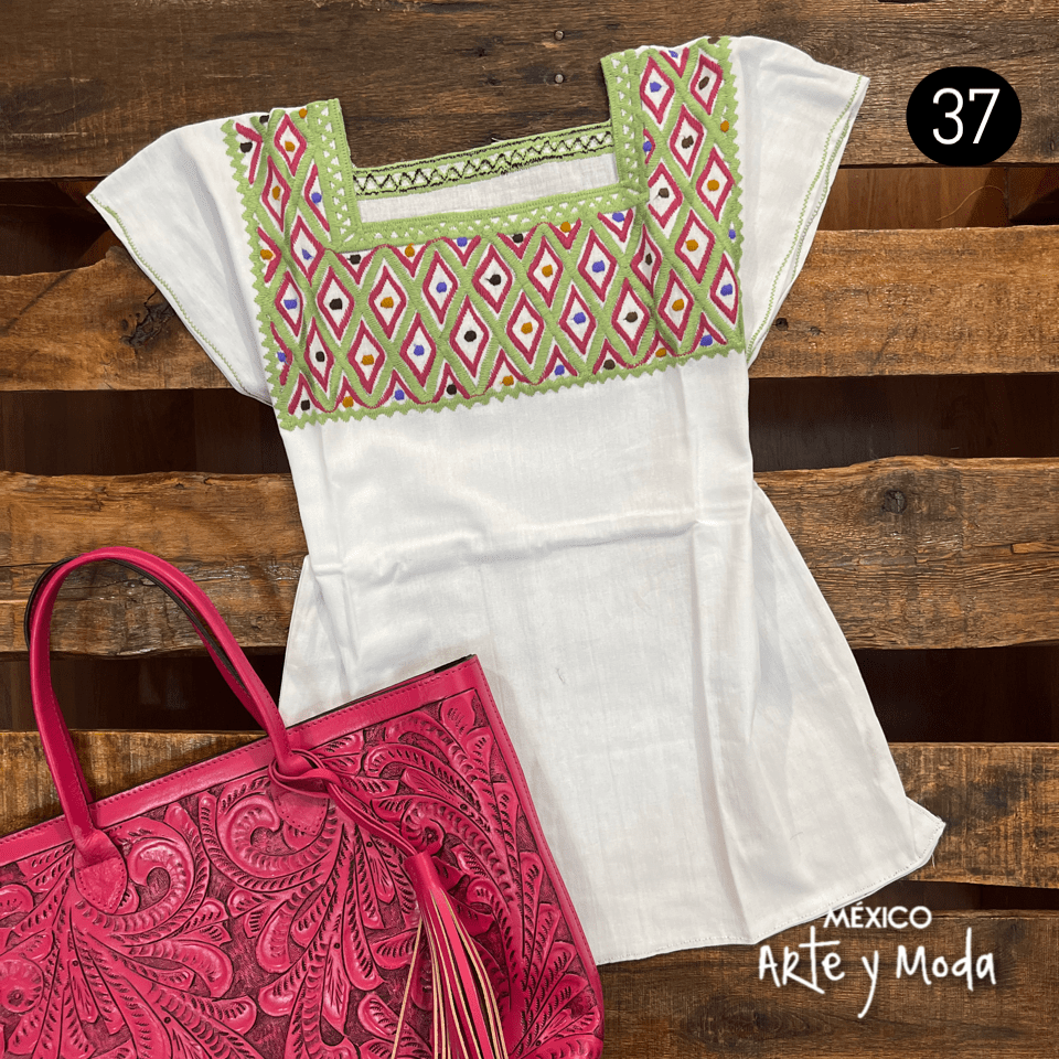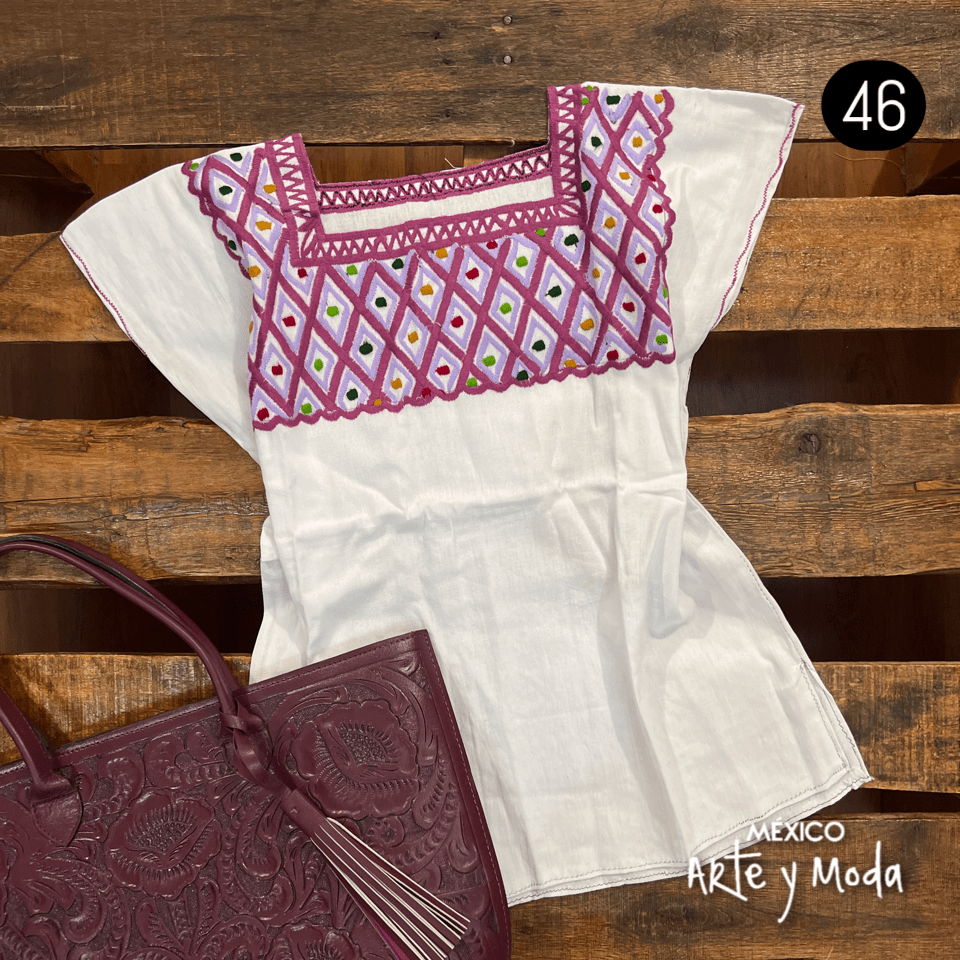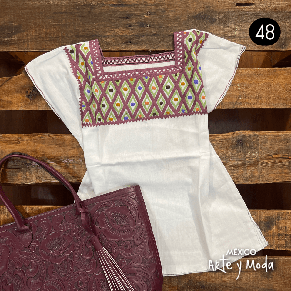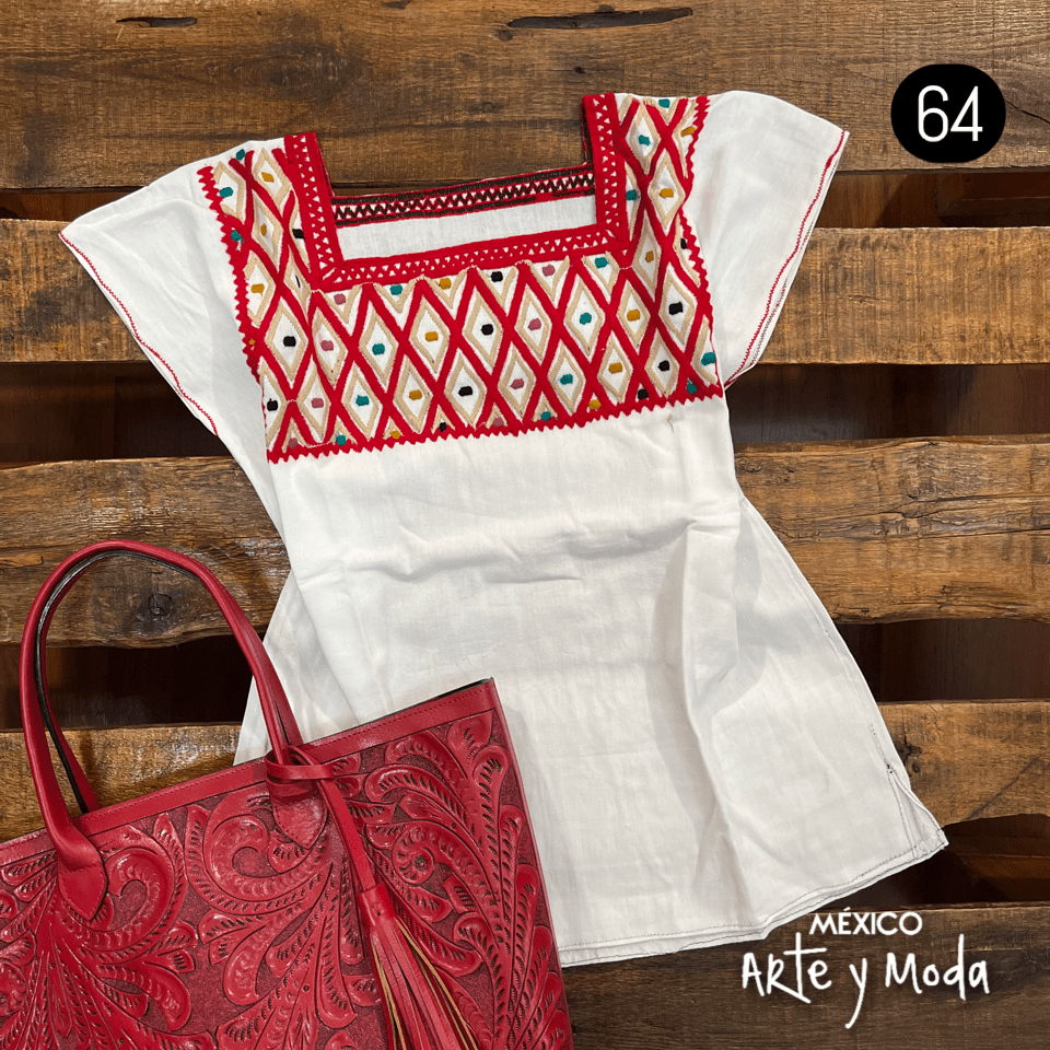 This handcrafted Mexican blouse, crafted from soft, premium manta, features a diamond-patterned embroidery that combines a simple design with vibrant colors. Its straight cut ensures comfort and style, while each unique piece reflects authenticity and traditional artistry. Perfect for those seeking a distinctive garment that enhances their personality and unique taste.